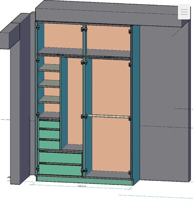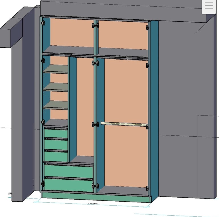 Nuo 3D vizualizacijų iki pilno baldų gamybos ir montavimo ciklo.